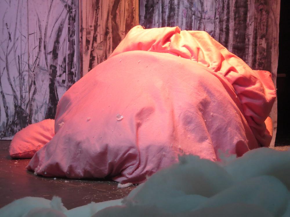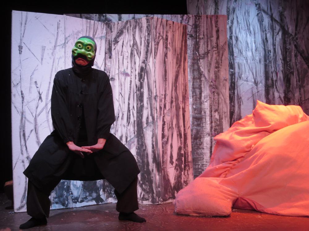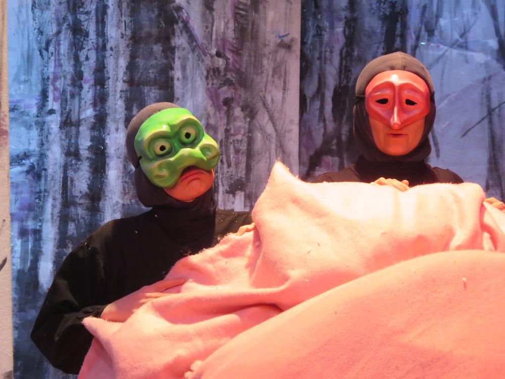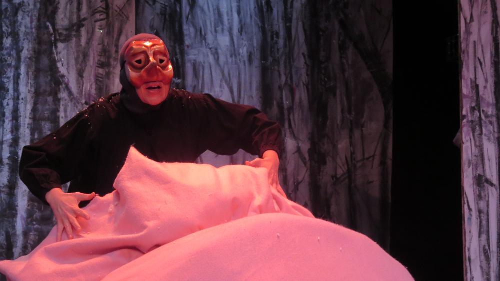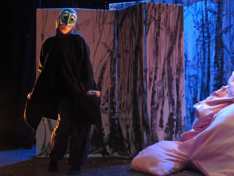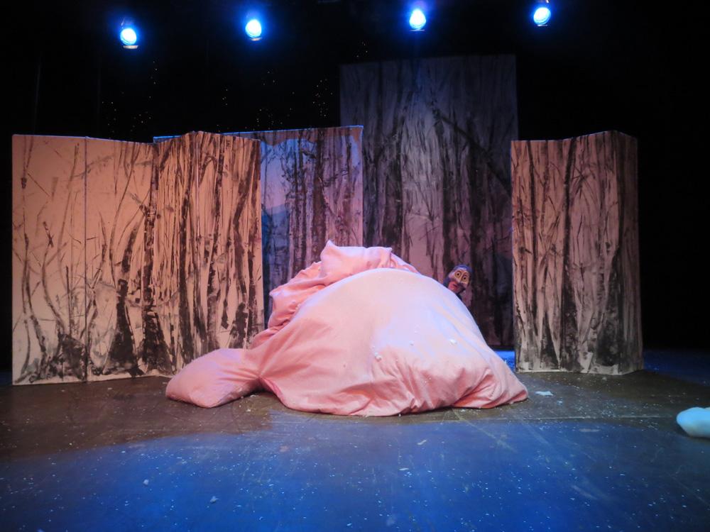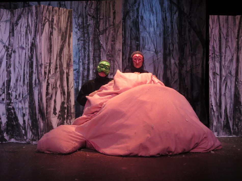 Cette charmante rencontre avec les animaux en hiver, est  mise en scène de façon dynamique et poétique.  Les demi-masques, créés par Tracey Boot, apportent des touches de couleur dans une forêt aux décors épurés, blancs et contemporains, peints par l’artiste Geneviève Joannin.
