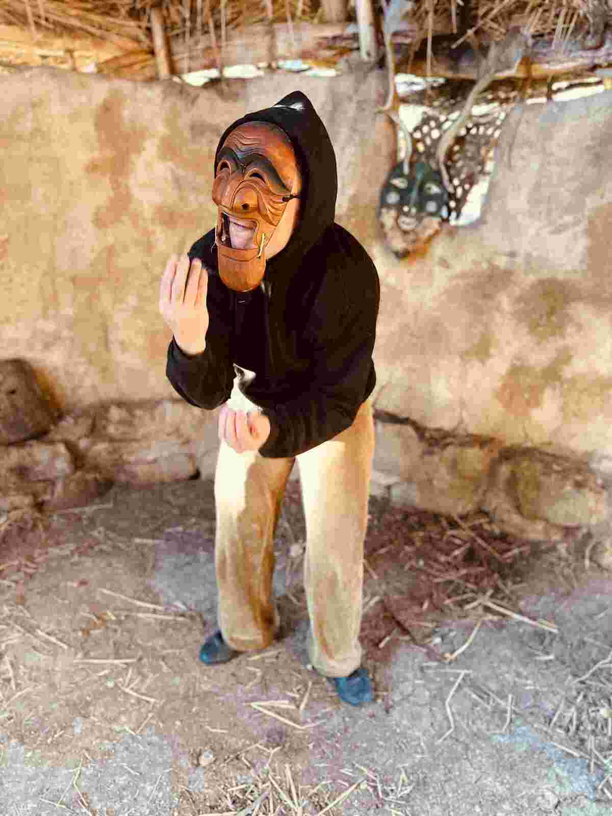 Nous sommes allés dans les grottes voisines pour explorer quelques masques du musée, quelle joie ! / Išli sme do neďalekých jaskýň preskúmať nejaké masky z múzea, aká radosť!